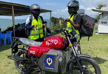 E-Glow provides access to Spiro EVs, Africa's top-rated electric motorcycles. Through our partnership with a leading commercial bank, women entrepreneurs can access affordable loans for the EVs and essential accessories, including safety gear and delivery bags.
